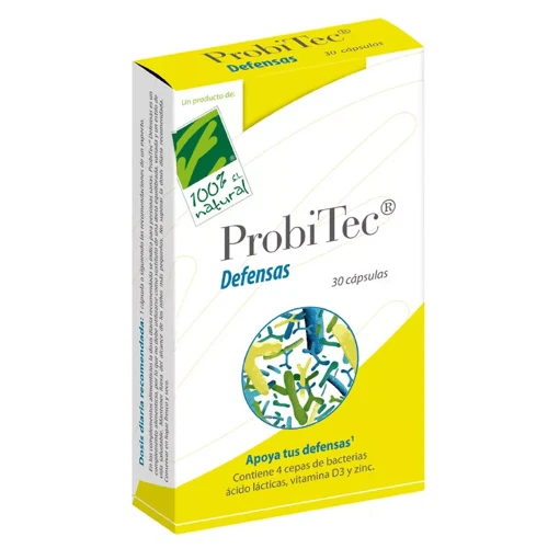 Complemento alimenticio formulado con 4 cepas diferentes de probióticos (bacterias ácido lácticas), con un recuento mínimo de 5 mil millones de bacterias vivas, junto con vitamina D3 y zinc.