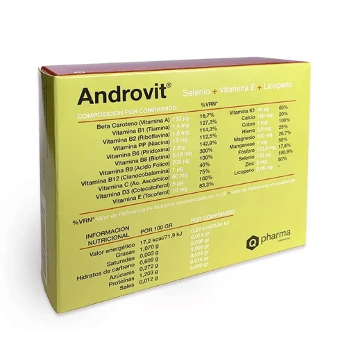 Androvit es un complemento alimenticio formulado a base de vitaminas, minerales y licopeno.