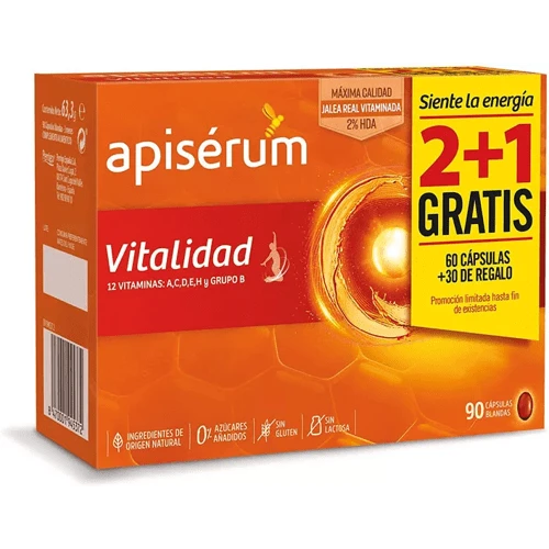 Complemento alimenticio con ingredientes de origen natural a base de jalea real y 12 vitaminas de los grupos A,C, D E, H y grupo B.