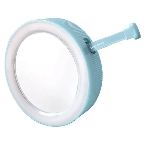 Espejo de aumento con luz y pinzas incorporadas para hacer más fácil la depilación de las cejas y el bigote.