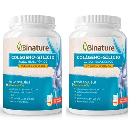Colágeno, Silicio y Ácido Hialurónico Binature Bote Vainilla 368gr DUPLO