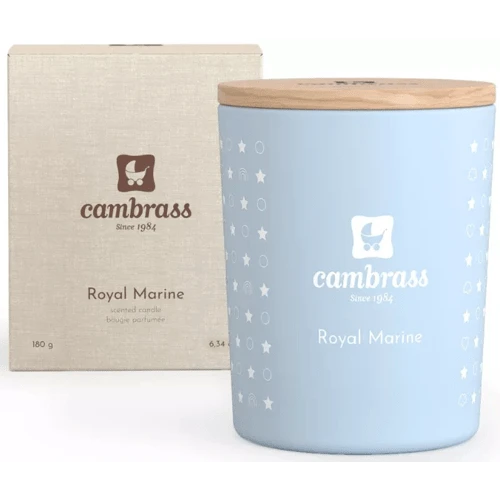 La vela aromática Cambrass Star Royal Marine es un producto elaborado con cera vegetal perfumada que se presenta en un tarro de confitura clásico.