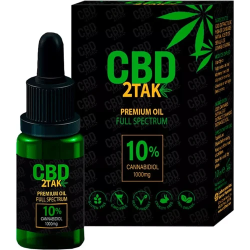 Cbd-2Tak 10% Premium Oil Full Spectrum 1000 mg se trata de un aceite 100% orgánico de extracto de hoja y aceite de semillas de Cannabis sativa.