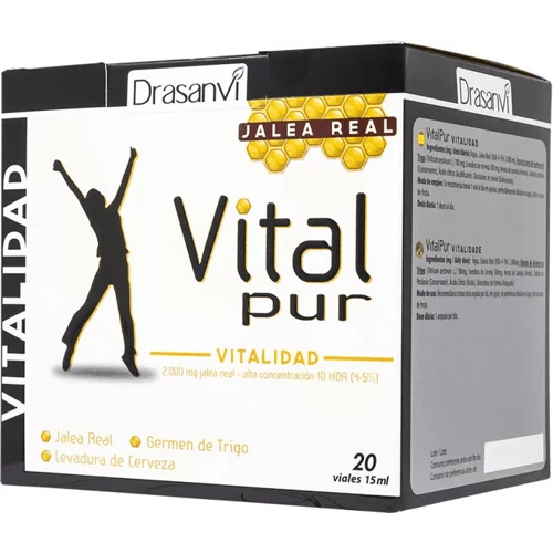 Vitalpur Vitalidad, con 2.000 mg de jalea real, está especialmente formulado para favorecer el funcionamiento del sistema inmunitario, al tiempo que ayuda a combatir el cansancio y la fatiga.