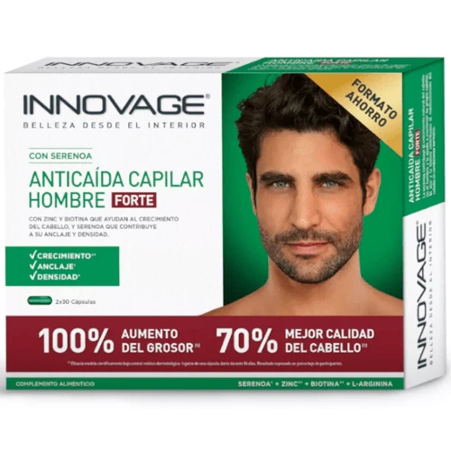 Innovage Anticaída Capilar Hombre es un suplemento alimenticio que frena la caída del cabello en hombres.