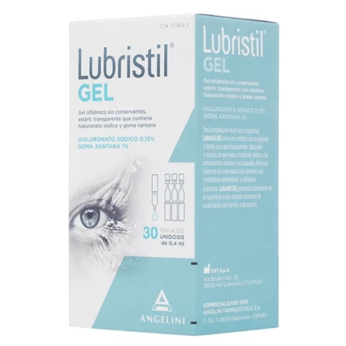 Tras la instilación en el saco conjuntival, Lubristil Gel entra en contacto con las lágrimas y forma una capa transparente, lubricante y viscosa que, reduciendo la fricción debida a los movimientos oculares y al parpadeo, alivia los síntomas de sequedad ocular.