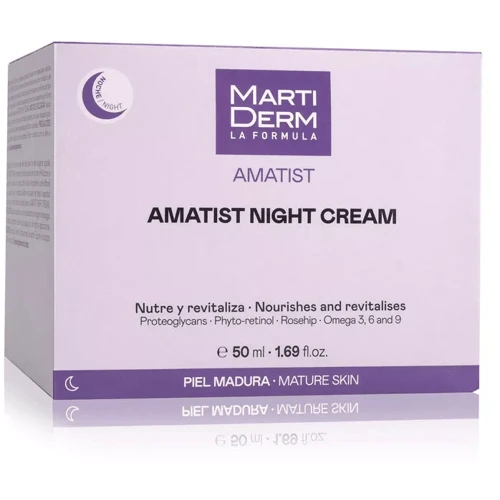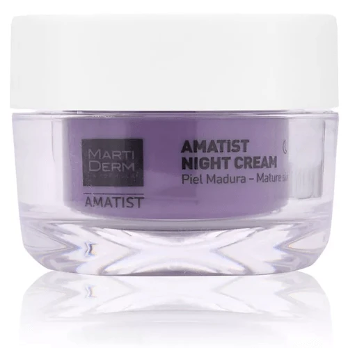 La crema de noche Amatist de MartiDerm está inspirada en el poder y color de la amatista, una piedra meditativa y calmante.