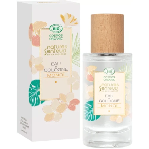 Esta agua de colonia orgánica con aroma a Monoï combina el incomparable frescor de la Colonia tradicional con la intensidad de un agua de perfume.