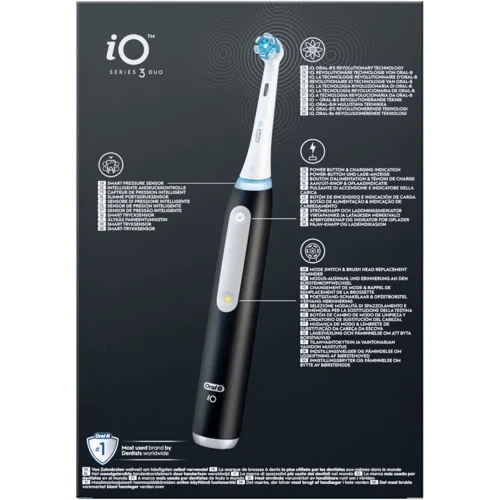 Descubre la mejor experiencia de cepillado con el Oral-B Cepillo Eléctrico iO3 Duo Negro Mate/Azul, un producto confiable respaldado por la marca líder en cuidado bucal y clínicamente probado para una limpieza superior.