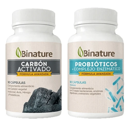 Complemento alimenticio a base de carbón vegetal, anís, hinojo y probióticos.