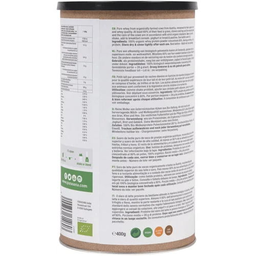 Purasana Proteína de Lactosuero en Polvo Natural Bio 400 gr