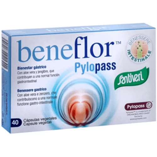 Complemento alimenticio a base de Lactobacillus reuteri (Pylopass), lentisco, jengibre, propolis, bromelaína y aloe vera.