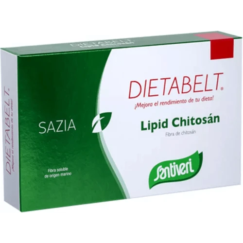Complemento alimenticio a base de chitosán, una fibra alimentaria soluble de origen marino que se encuentra de forma natural en la quitina de los caparazones de crustáceos y mariscos.