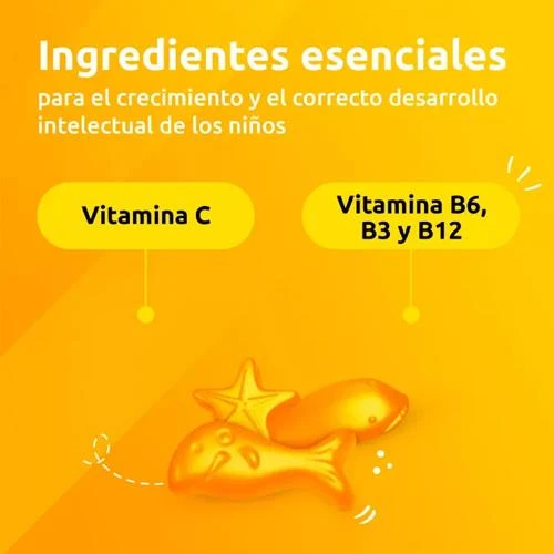 Una nueva y deliciosa forma de tomar vitaminas para niños/as a partir de 4 años, que complementa una dieta equilibrada ayudando al crecimiento y desarrollo.