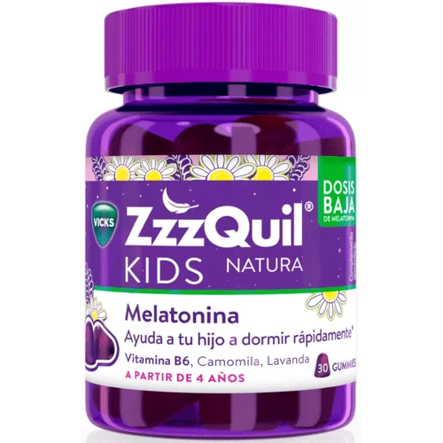 ZzzQuil Natura Kids Melatonina es un complemento alimenticio especialmente formulado para ayudar a conciliar el sueño de forma natural en niños a partir de 4 años.